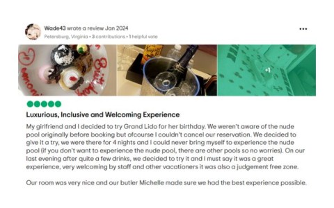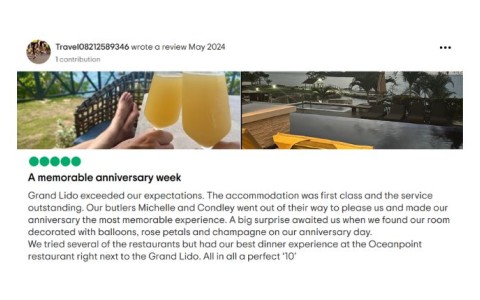 Grand Lido offers an adults-only experience, ensuring a serene and sophisticated environment perfect for couples. Enjoy exclusive amenities, intimate settings, and a tranquil atmosphere designed for romance and relaxation.